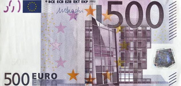 - فئةُ (500) يورو: وهي تُعبّرُ في تصميمِها عن الطرازِ المعماريِّ الحديثِ في القرنِ العشرين.